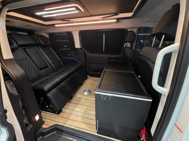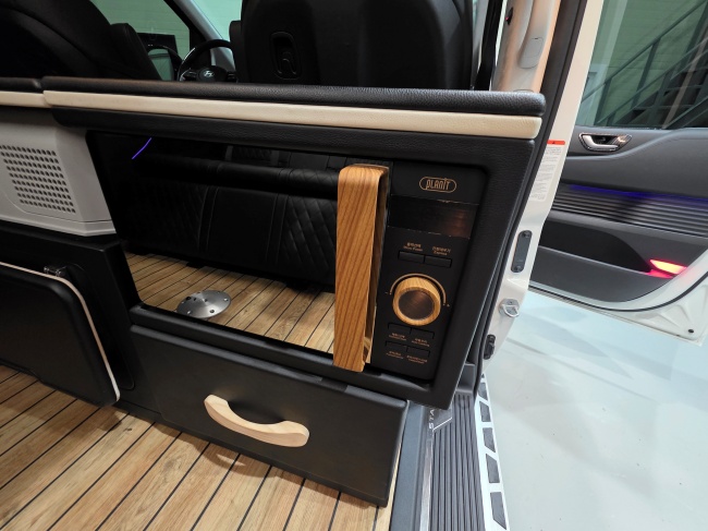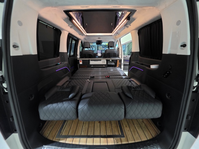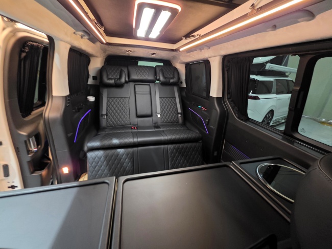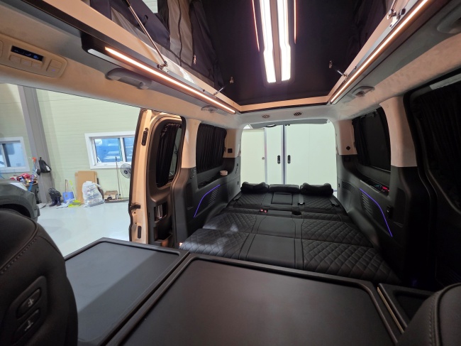 - 무시동히터 에바스패커(가솔린전용),전동키친세트(온수기,냉장고,씽크볼,전자레인지,전동레일),2열 침대형 모션 전동 시트,전동트렁크,전동슬라이드문