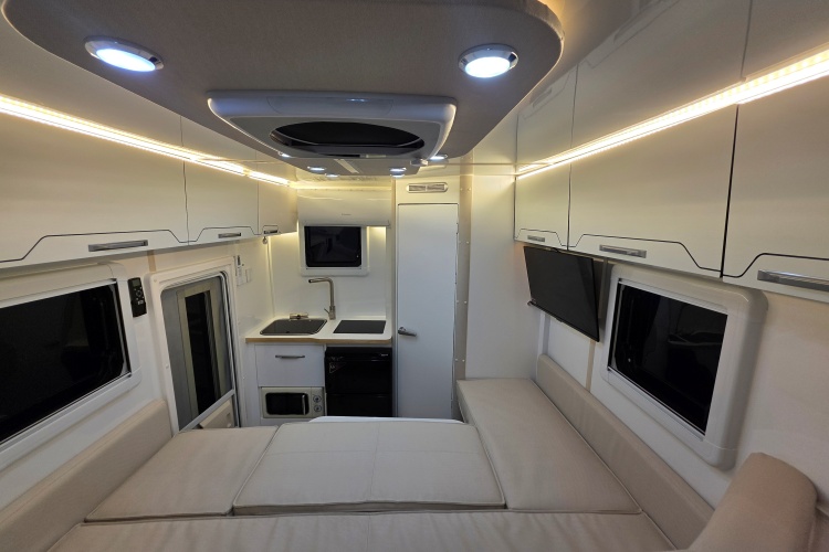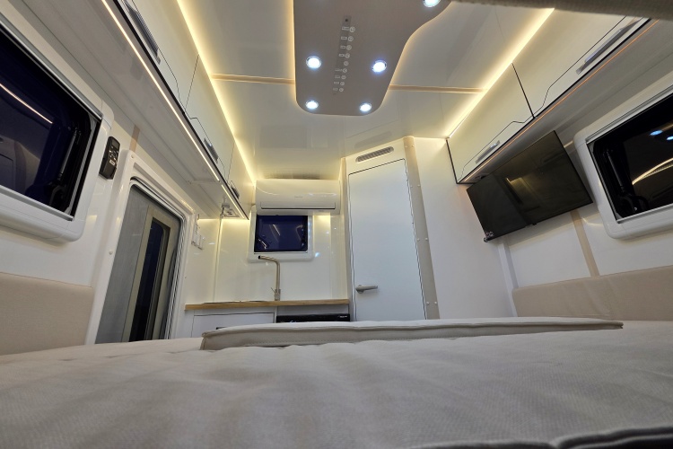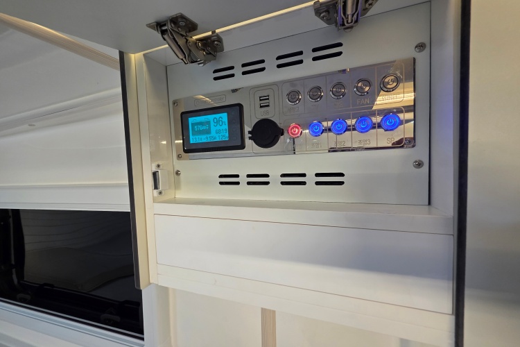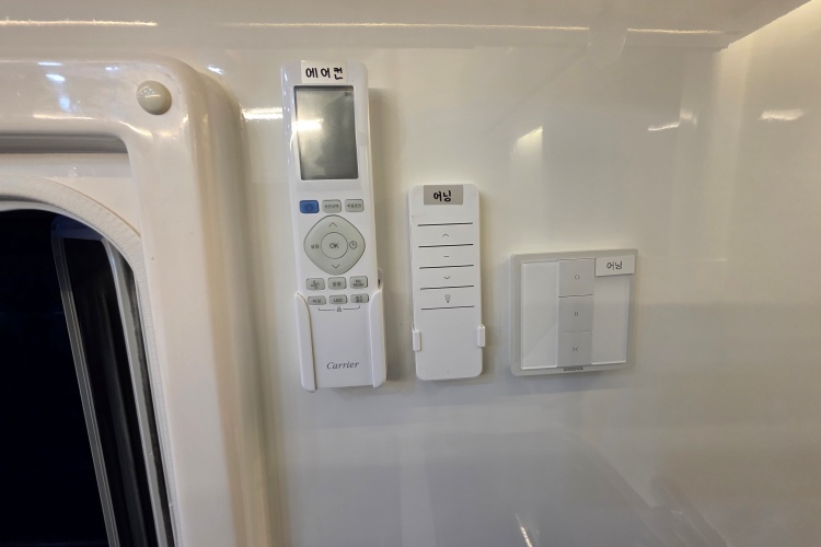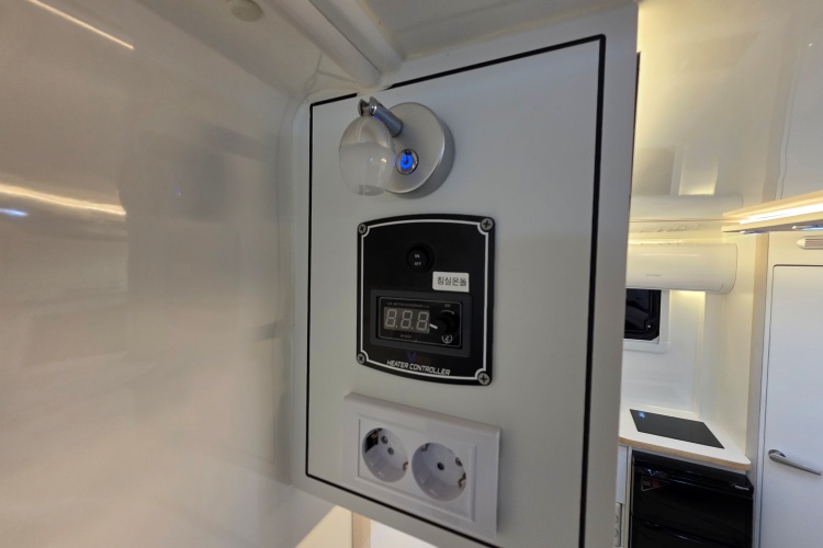 - 무시동히터(공기난방+바닥난방+벙커바닥난방),벽걸이 에어컨,맥스팬,TV,전자레인지,
